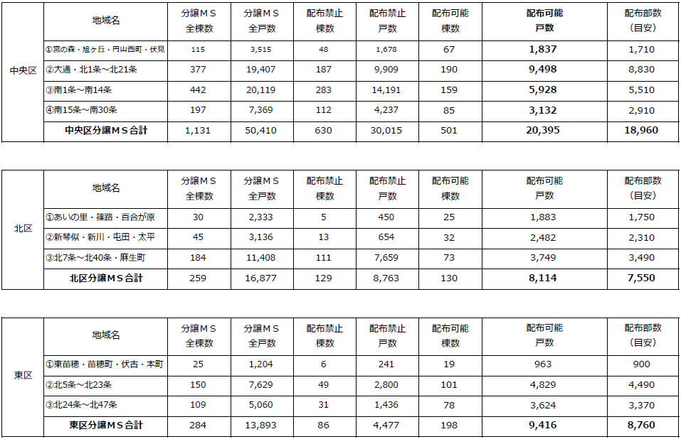 業種によっては、ピンポイントでターゲットに訴求できる効果的な配布方法になります。(札幌の場合、配布エリアも広範囲になります。)