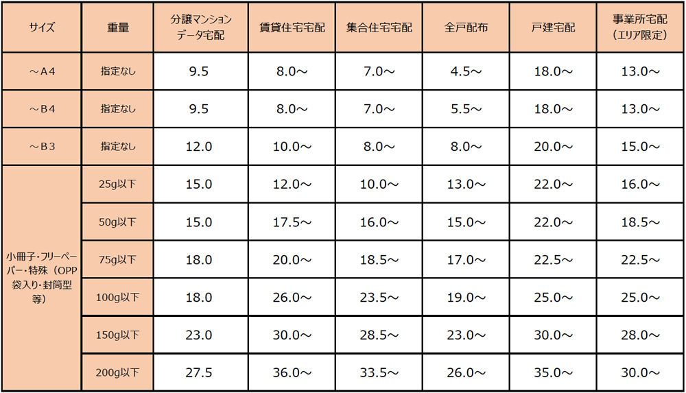 ※上記の配布・宅配プランは、一般的なポスティング種別になります。